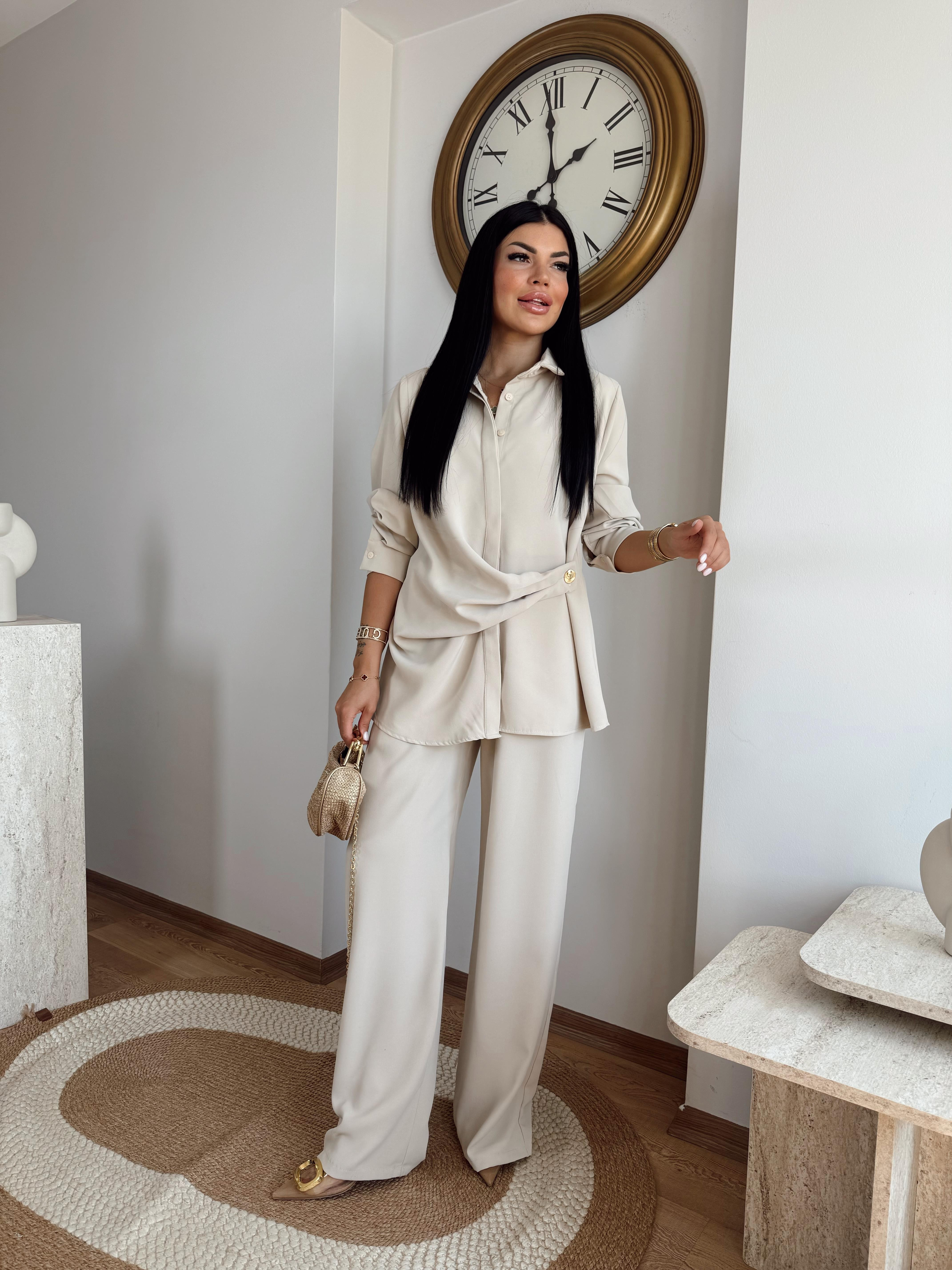BEJ GOLD DETAYLI GÖMLEK PALAZZO TAKIM