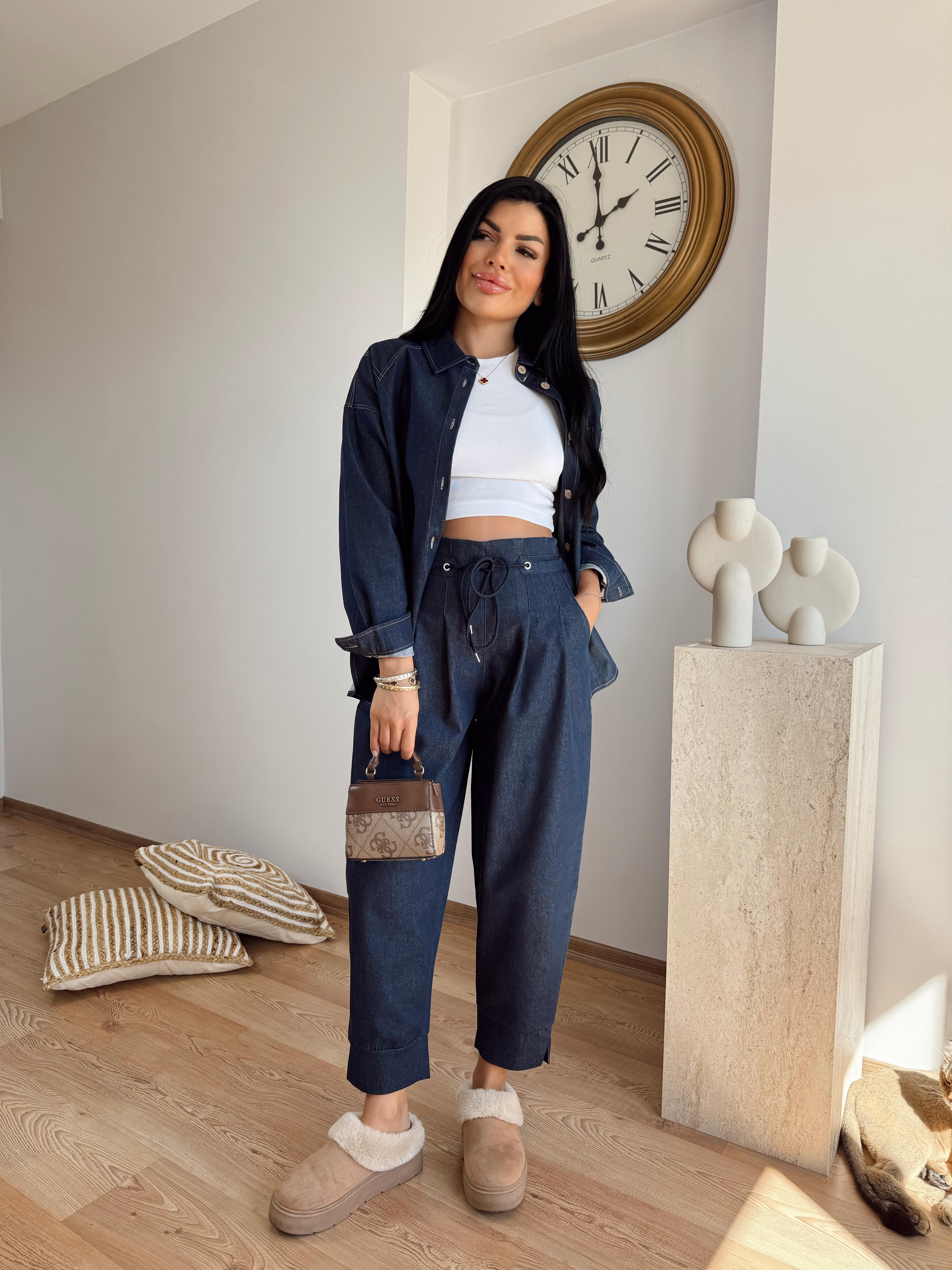 Kot gömlek balon pantolon takım