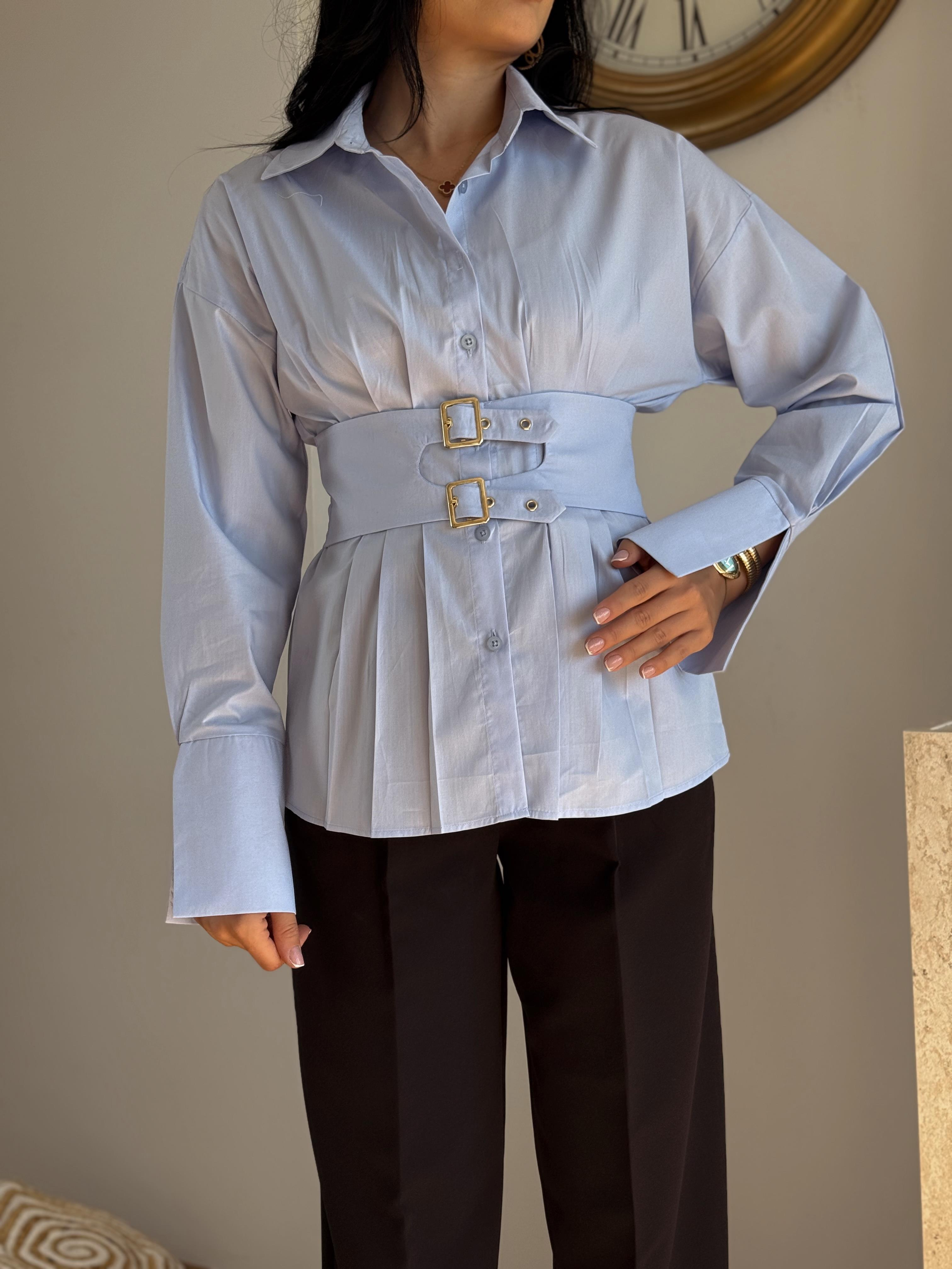 MAVİ BEL AKSESUARLI GÖMLEK