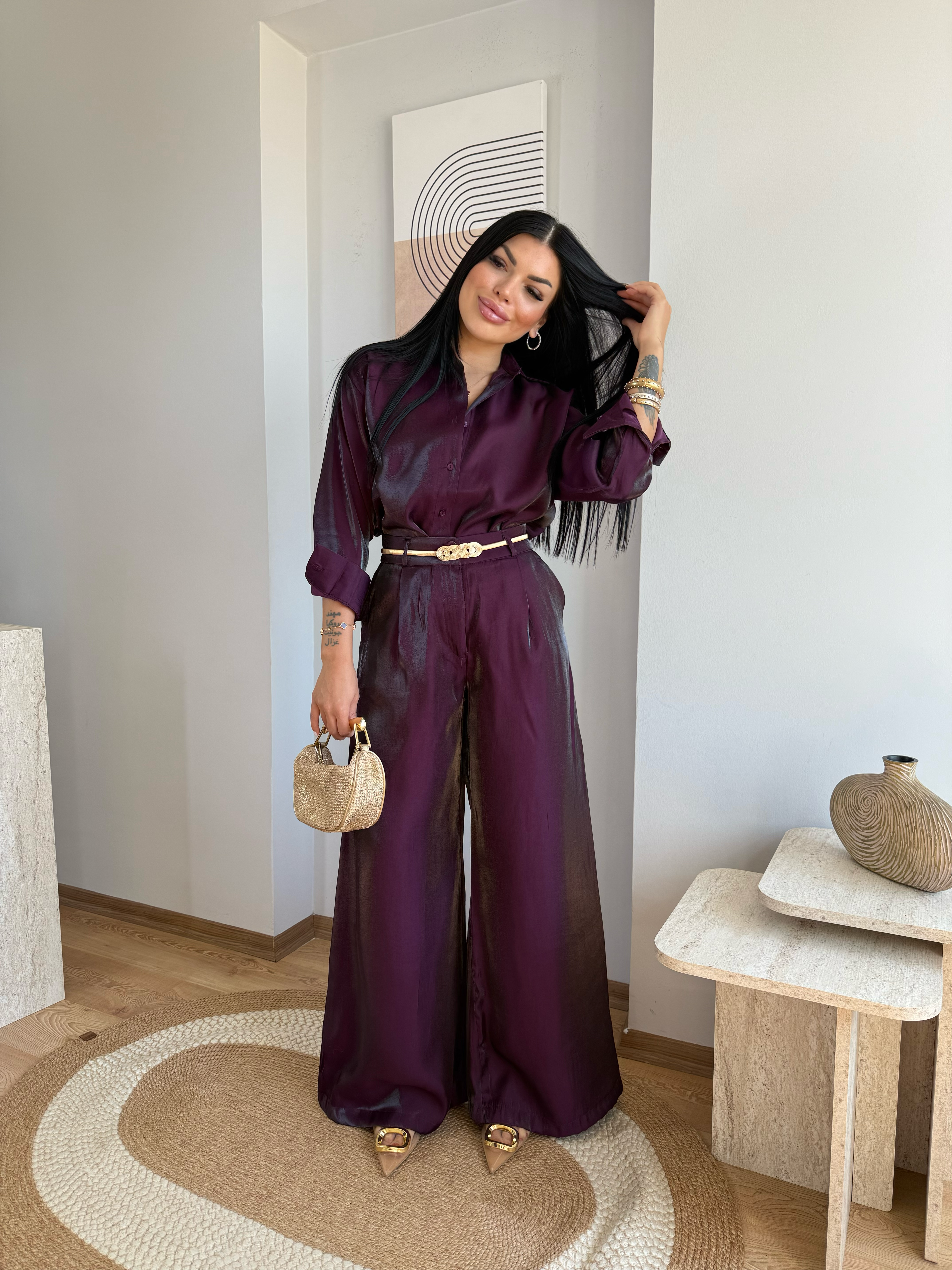 MOR PARLAK GÖMLEK PALAZZO TAKIM