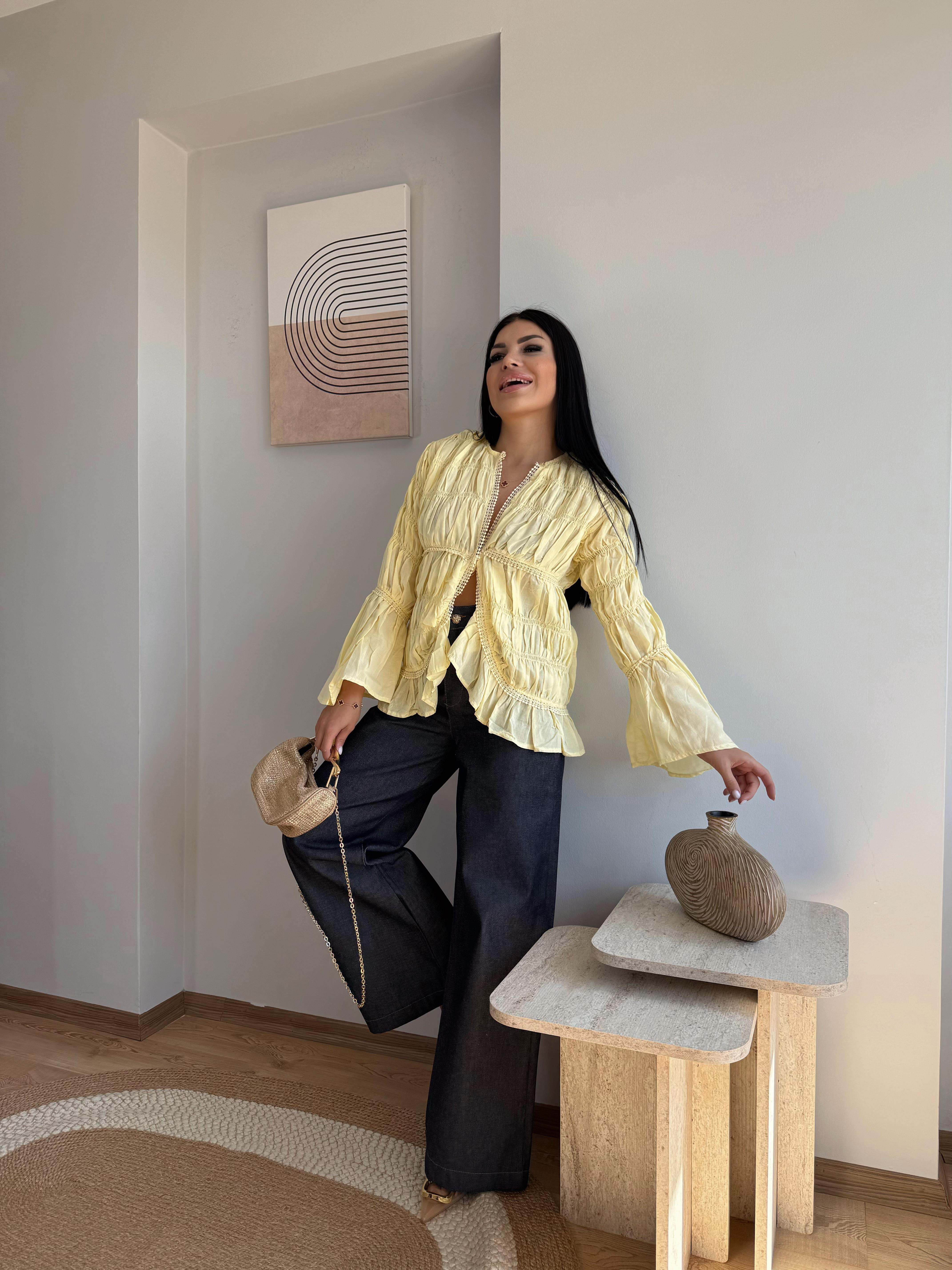 SARI POPLİN TASARIM BLUZ