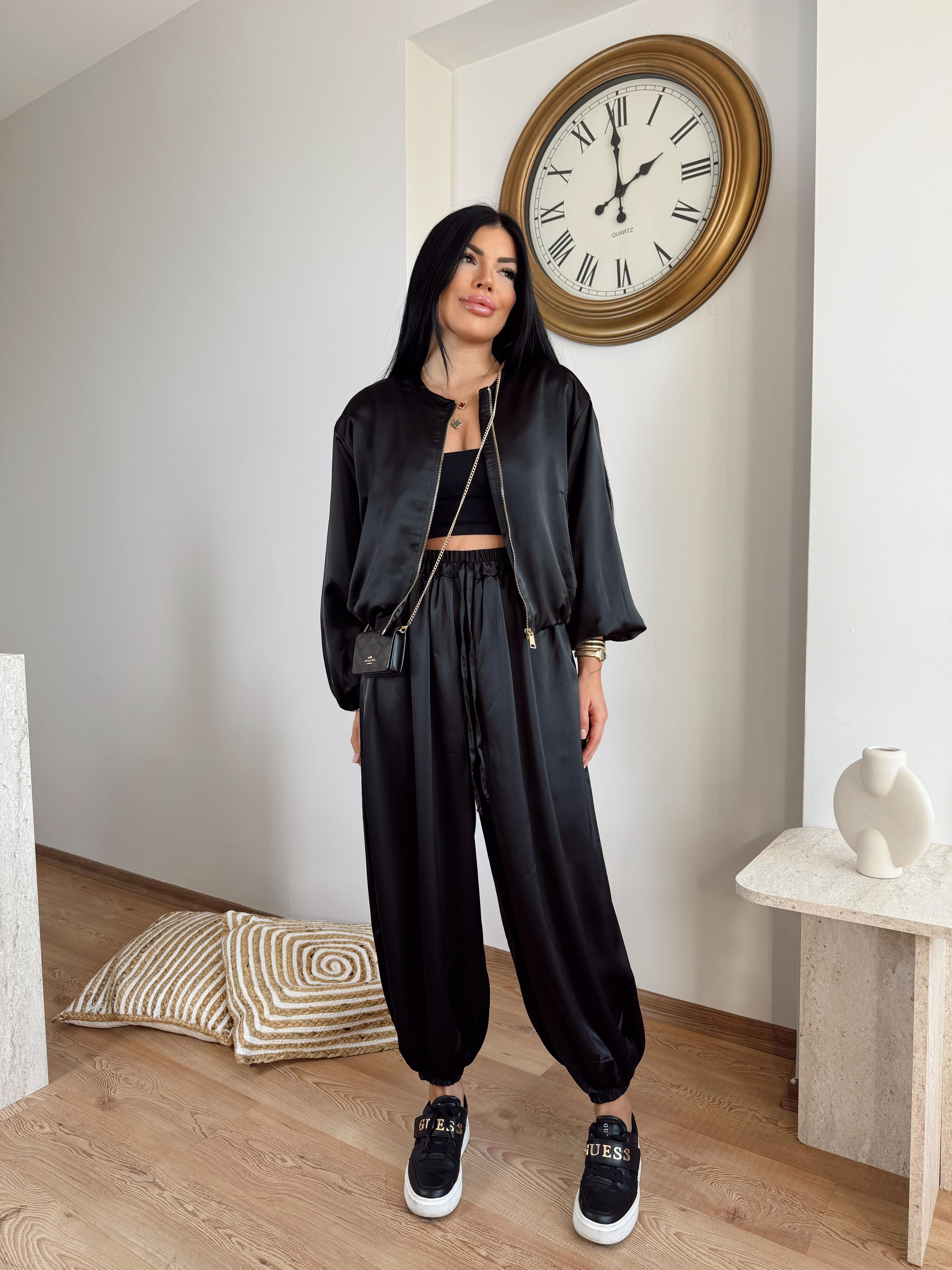 SİYAH BOMBER CEKET VE LASTİKLİ ŞALVAR TAKIM