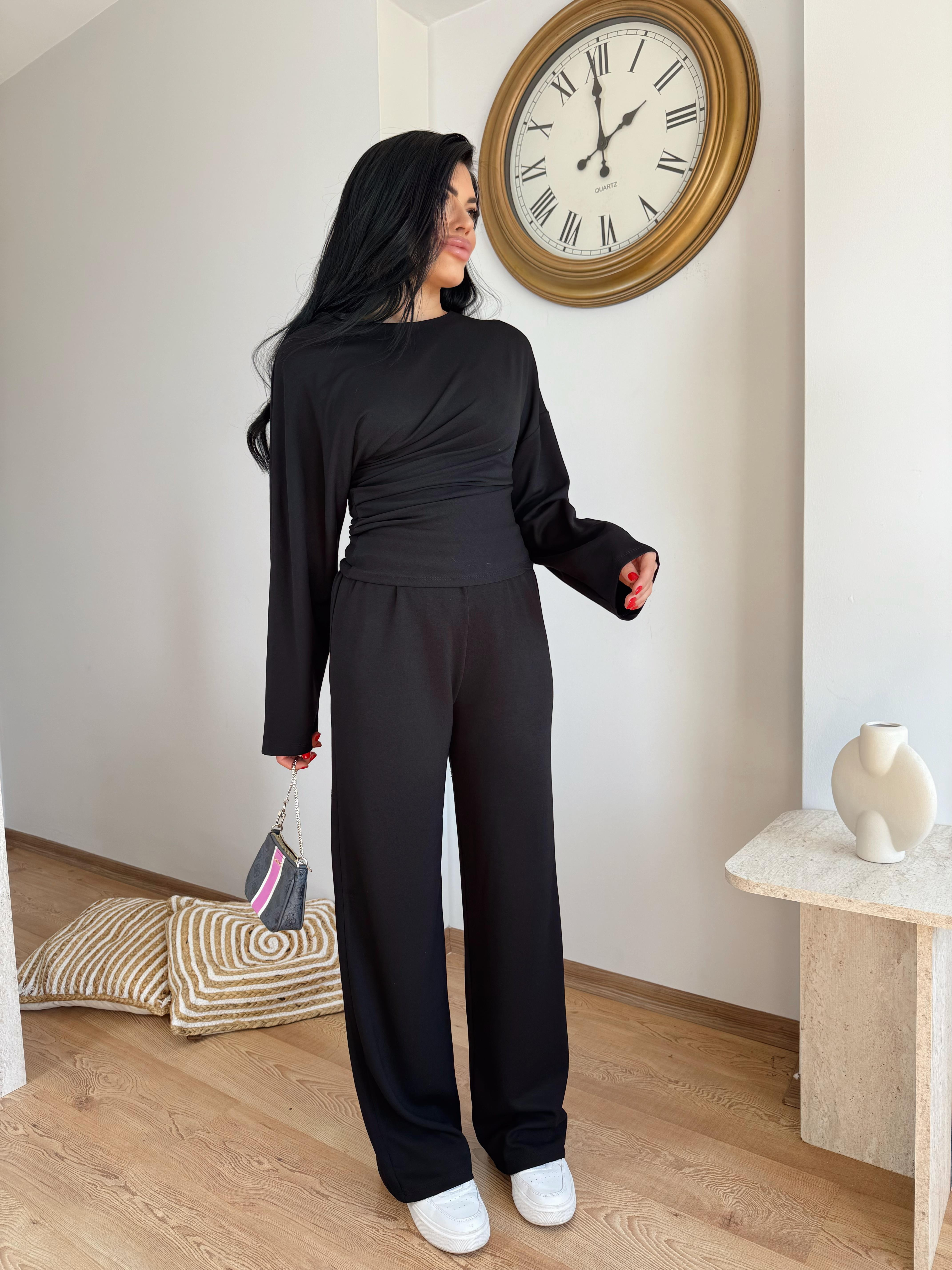 SİYAH MODAL KUMAŞ GİPE DETAYLI GİY-ÇIK TAKIM