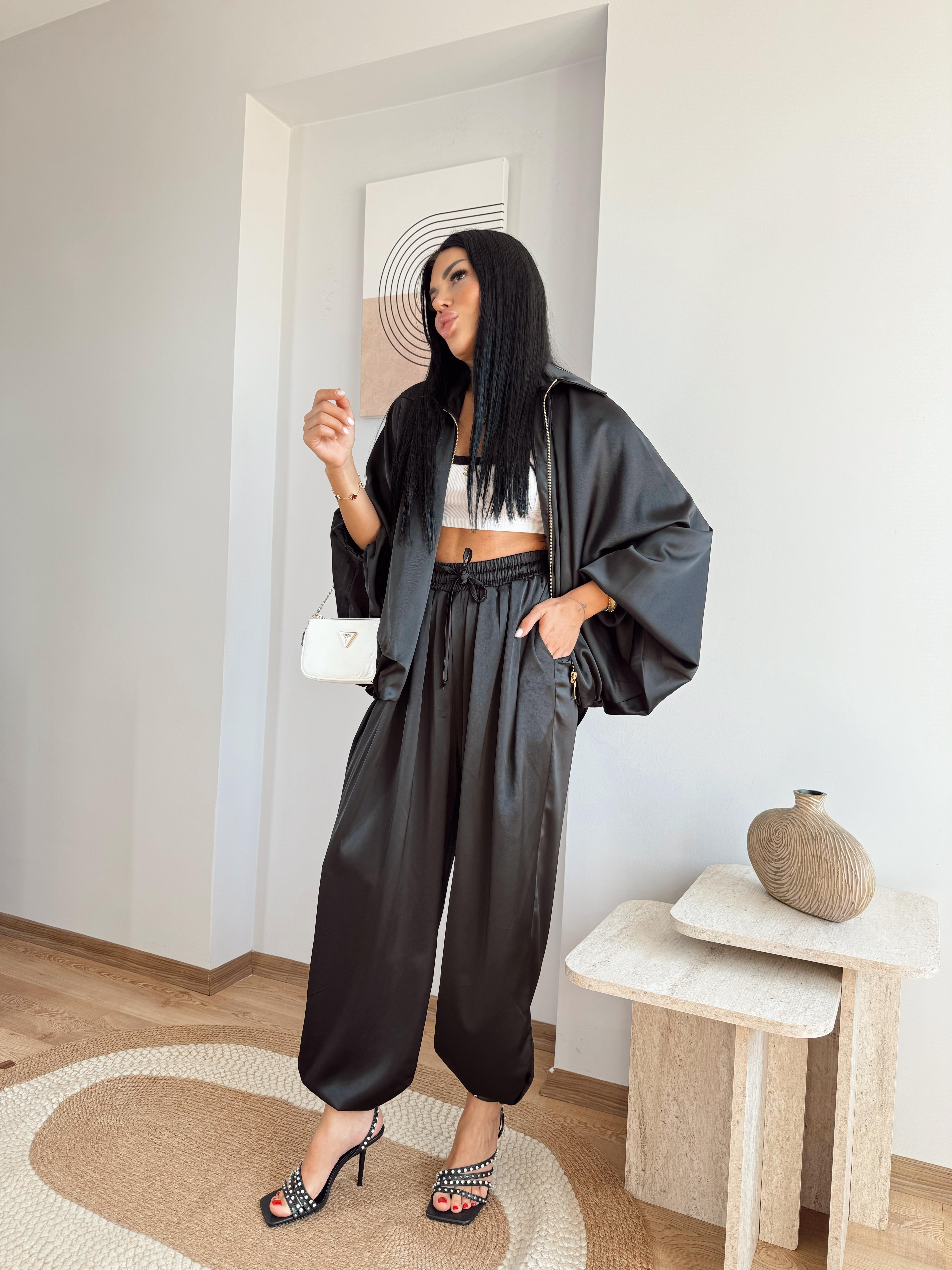 SİYAH SATEN BOMBER ŞALVAR TAKIM