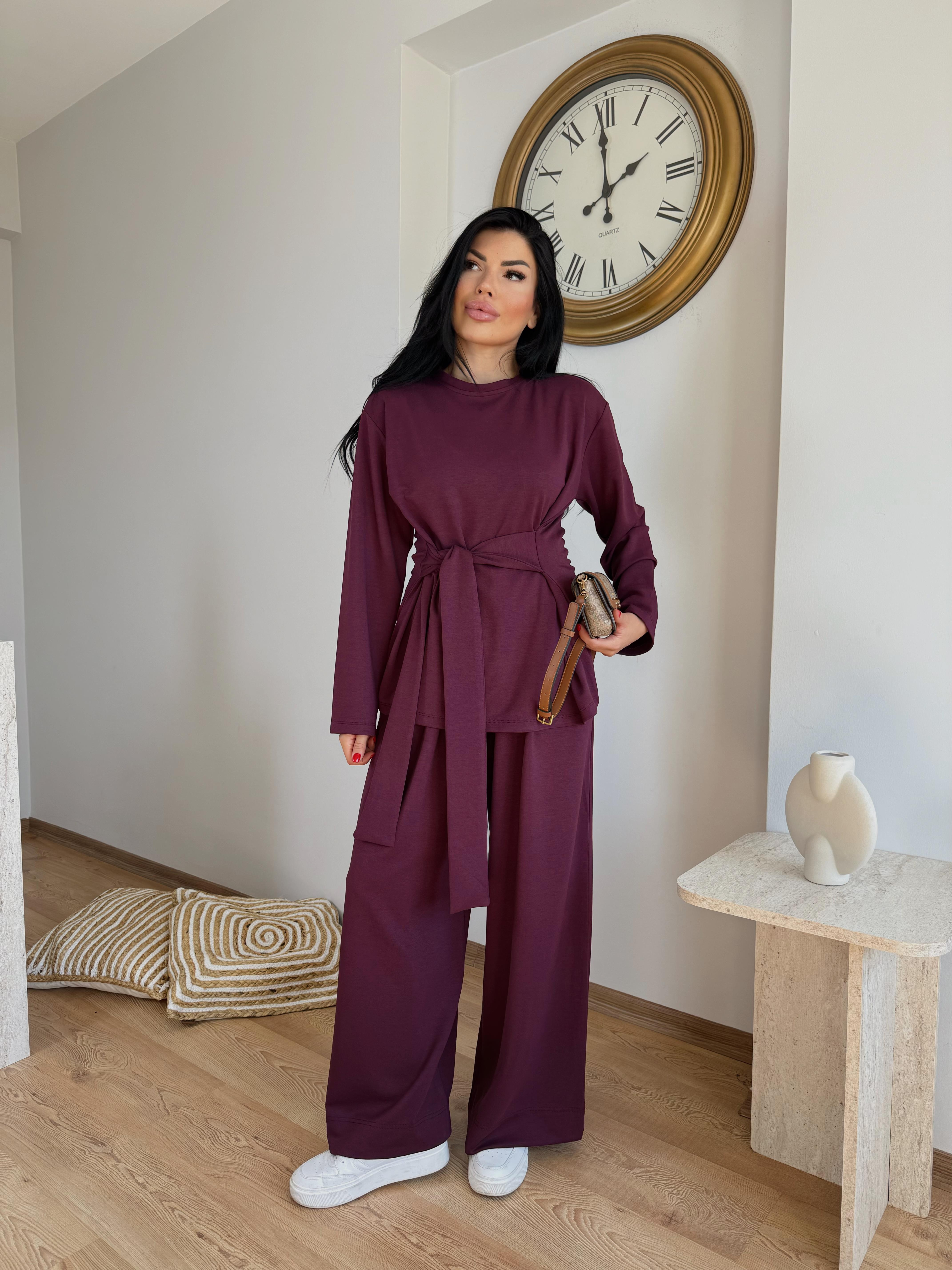 BORDO MODAL KUMAŞ BAĞLAMA DETAYLI GİY ÇIK TAKIM