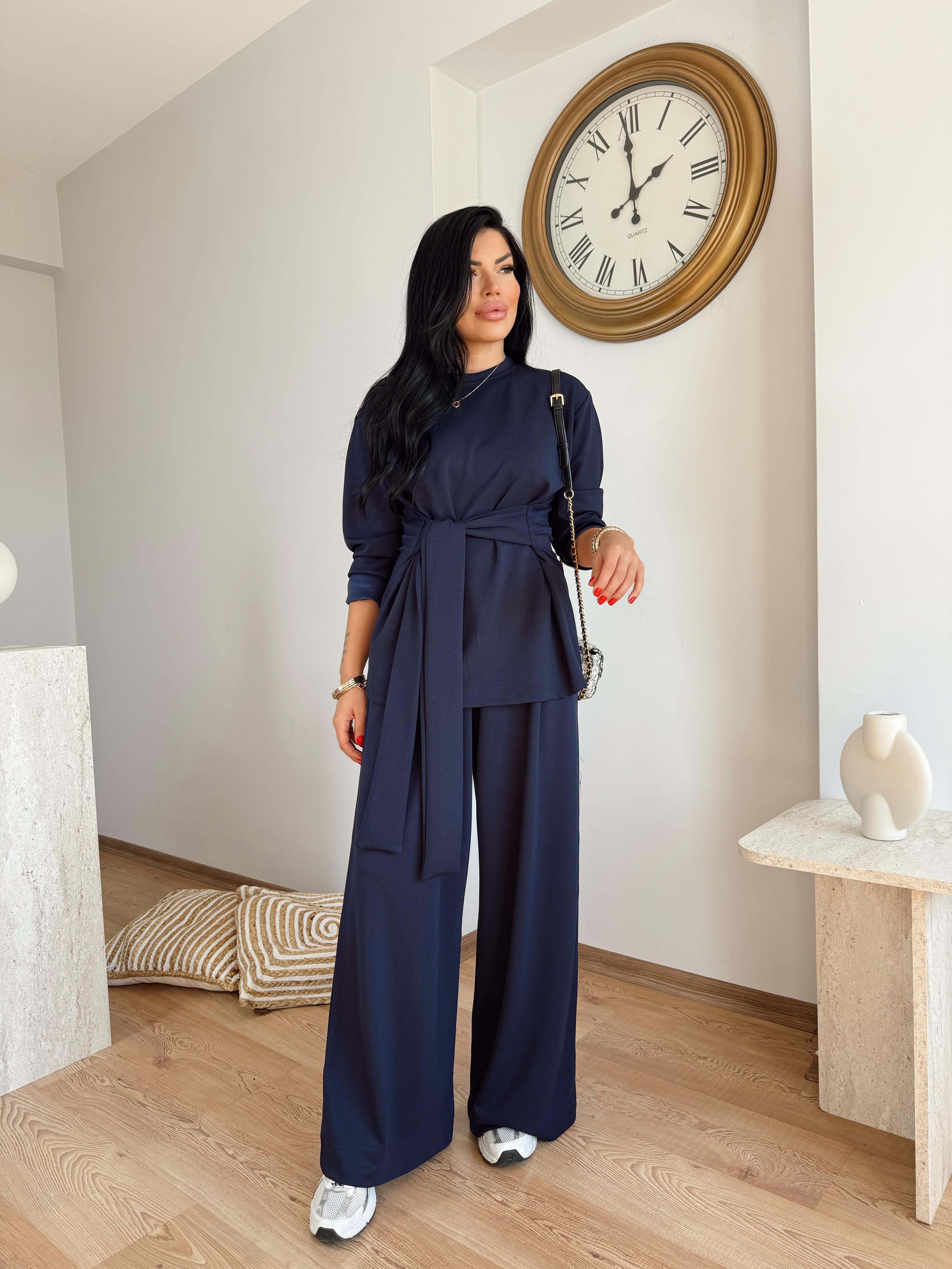 LACİVERT MODAL KUMAŞ BAĞLAMA DETAYLI GİY ÇIK TAKIM